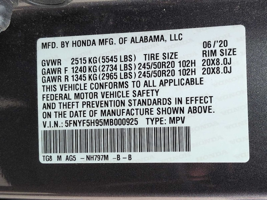 - Front tires: 245/50HR20.0