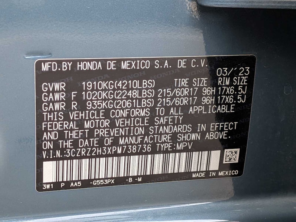 2023 Honda HR-V LX AWD 25/30 City/Highway MPG