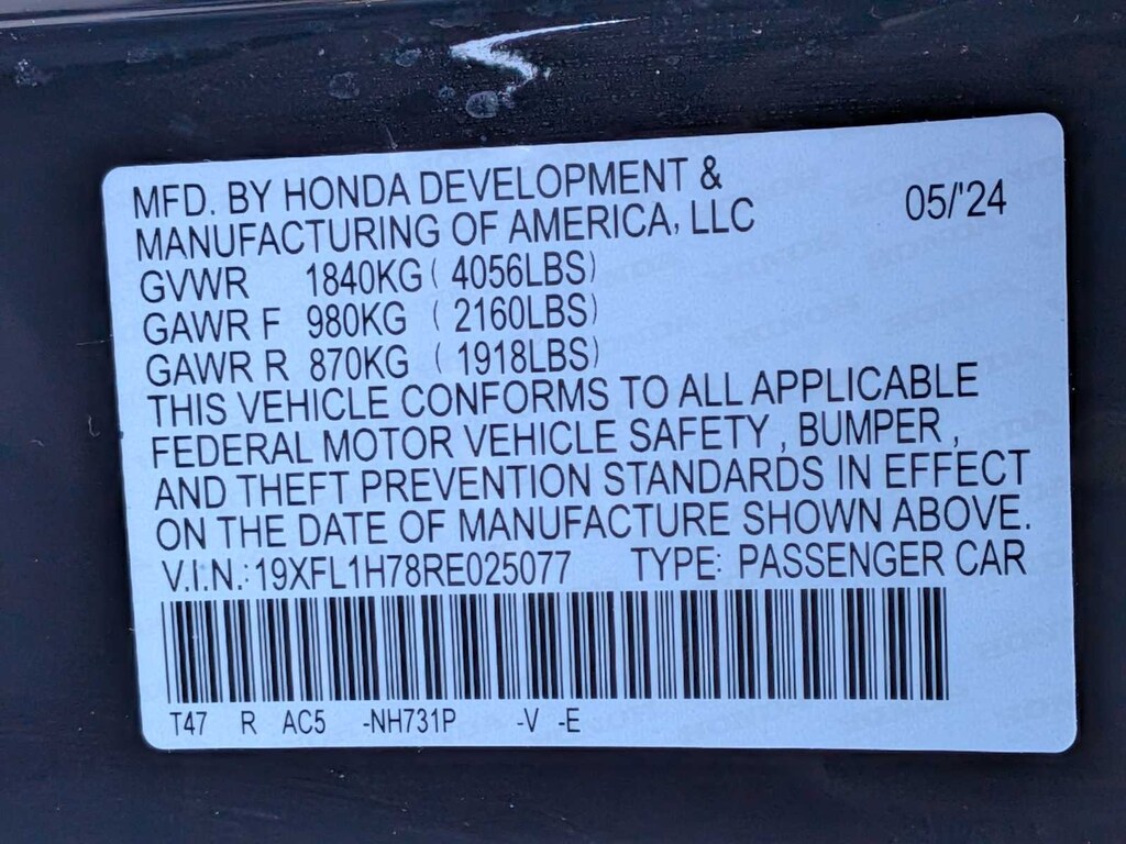 2024 Honda Civic EX-L FWD 31/39 City/Highway MPG
