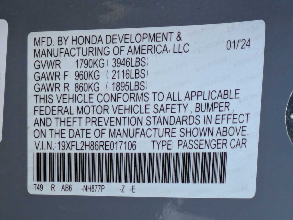 2024 Honda Civic Sport FWD 29/37 City/Highway MPG
