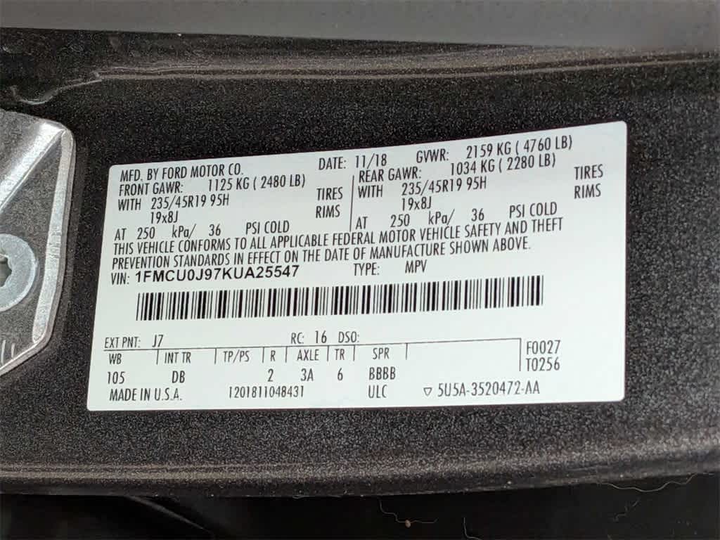 2019 Ford Escape Titanium FWD 22/29 City/Highway MPG
