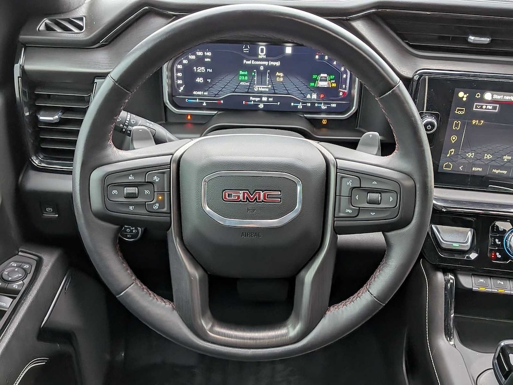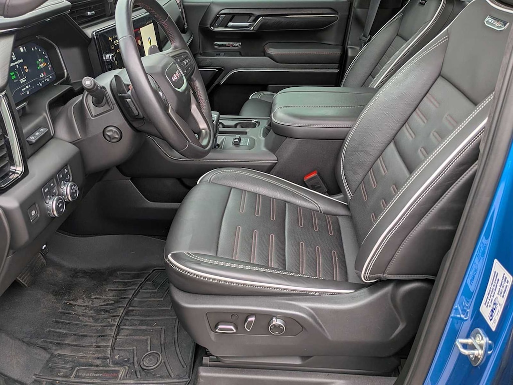 LPO, OFF-ROAD HIGH CLEARANCE STEPS (dealer-installed), AUDIO SYSTEM, 13.4 DIAGONAL PREMIUM GMC INFOTAINMENT SYSTEM WITH GOOGLE BUILT IN APPS SUCH AS NAVIGATION AND VOICE ASSISTANCE, INCLUDES COLOR TOUCH-SCREEN, MULTI-TOUCH DISPLAY, AM/FM STEREO Bluetooth® streaming audio for music and most phones; featuring wireless Android Auto® and Apple CarPlay® capability for compatible phones (STD), ENGINE, 6.2L ECOTEC3 V8 (420 hp [313 kW] @ 5600 rpm, 460 lb-ft of torque [624 Nm] @ 4100 rpm); featuring Dynamic Fuel Management (STD), TRANSMISSION, 10-SPEED AUTOMATIC WITH ELECTRONIC PRECISION SHIFT, ELECTRONICALLY CONTROLLED with overdrive, and tow/haul mode and steering column paddle shifters. Includes Cruise Grade Braking and Powertrain Grade Braking (STD). GMC AT4X with Dynamic Blue Metallic exterior and Obsidian Rush interior features a 8 Cylinder Engine with 420 HP at 5600 RPM*. Approx. Original Base Sticker Price: $81,700*.