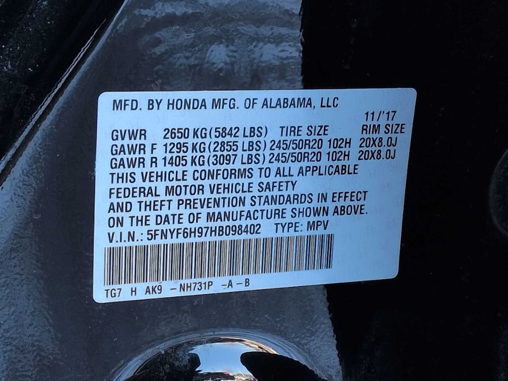 * 2017 IIHS Top Safety Pick+ (When equipped with Honda Sensing and specific headlights) * 2017 KBB.com 10 Best Certified Pre-Owned 3-Row SUVs Under $30,000 * 2017 KBB.com 12 Best Family Cars * 2017 KBB.com Best Buy Awards * 2017 KBB.com 10 Most Awarded Brands * 2017 KBB.com Brand Image Awards