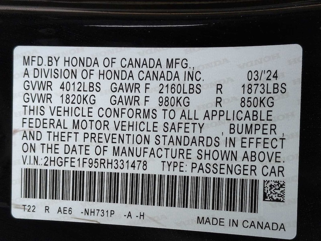 2024 Honda Civic Touring FWD 31/38 City/Highway MPG