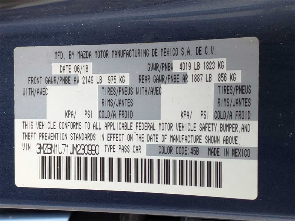 2018 Mazda Mazda3 Sport FWD 28/37 City/Highway MPG