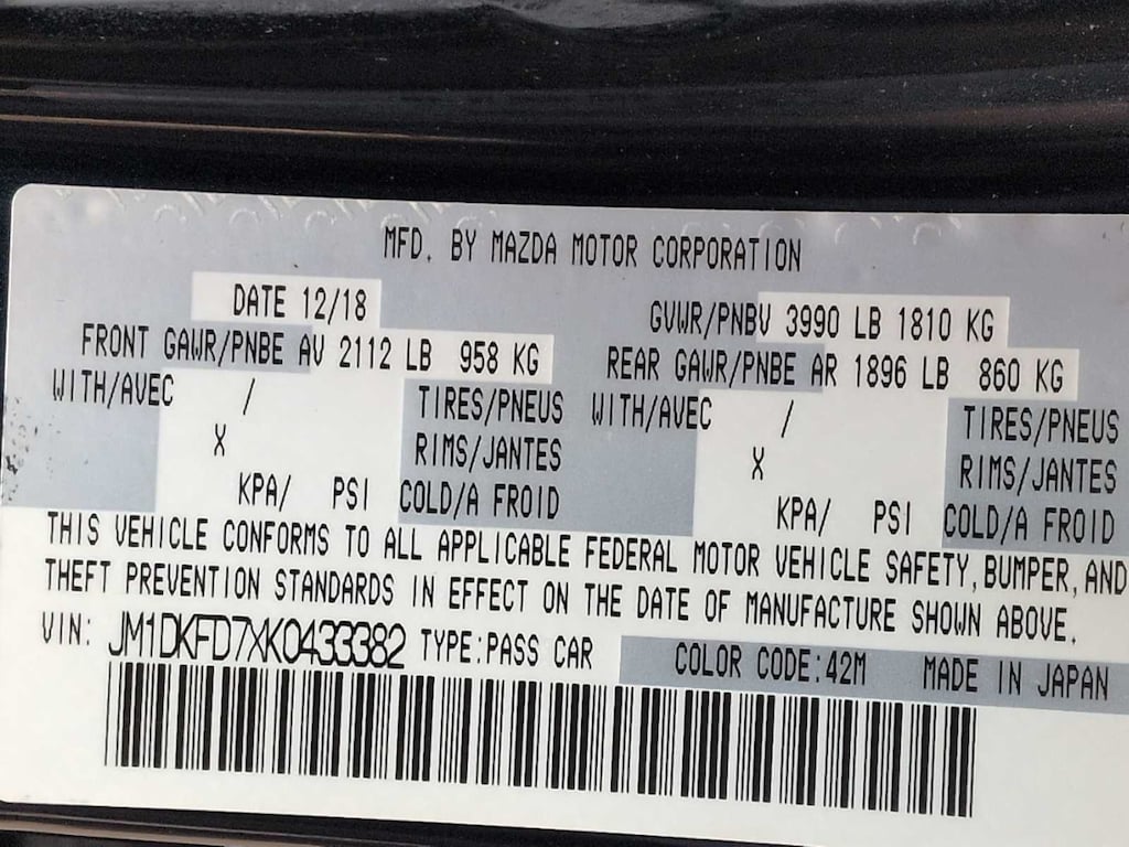 2019 Mazda CX-3 Grand Touring AWD 27/32 City/Highway MPG